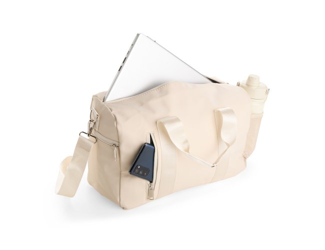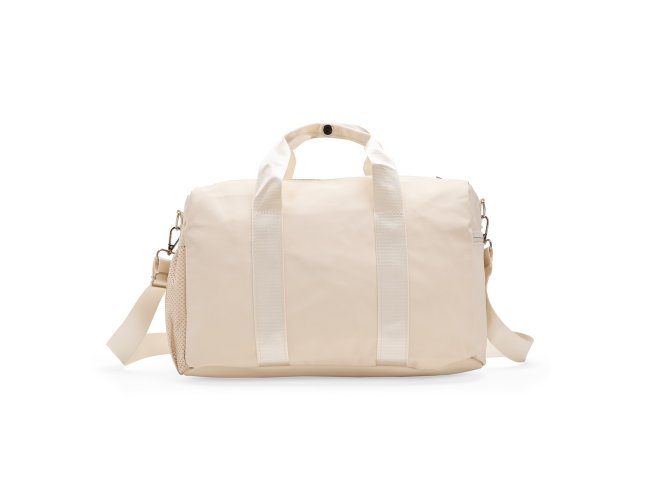 Bolsa confeccionada em couro sintético impermeável com fechamento em zíper e capacidade máxima de 14 litros. Apresenta compartimento interno revestido em nylon e bolso dedicado a objetos menores. Possui dois compartimentos externos em tamanhos diferentes, bolso em tela de nylon e três alças: duas de mão e uma transversal removível.