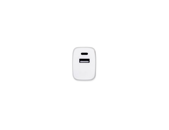 Adaptador de corrente USB-C e USB-A em ABS 100% reciclado. Com USB-C PD20 (20W) e USB-A QC 3.0 (18W) este adaptador permite carregamentos super-rápidos, sendo eficaz em casa, no escritório ou em viagem. Compatível com qualquer dispositivo (o cabo de carregamento é vendido à parte). Fornecido em caixa presente de papel kraft reciclado.