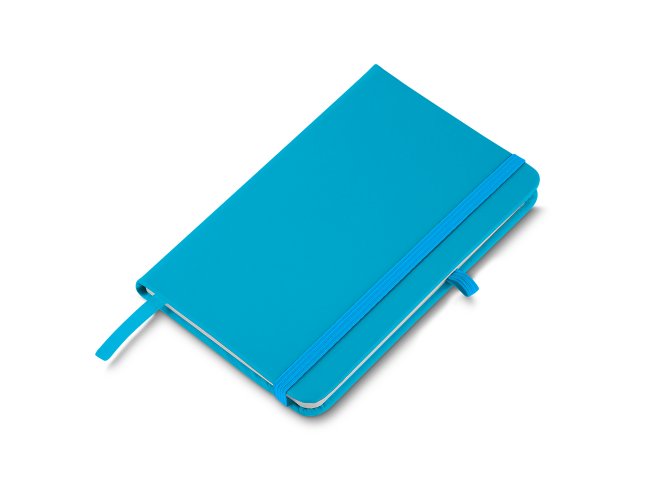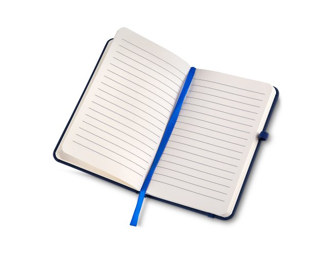 Caderno capa dura. C. sintético. Com porta esferográfica e 80 folhas pautadas.