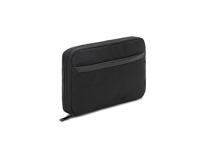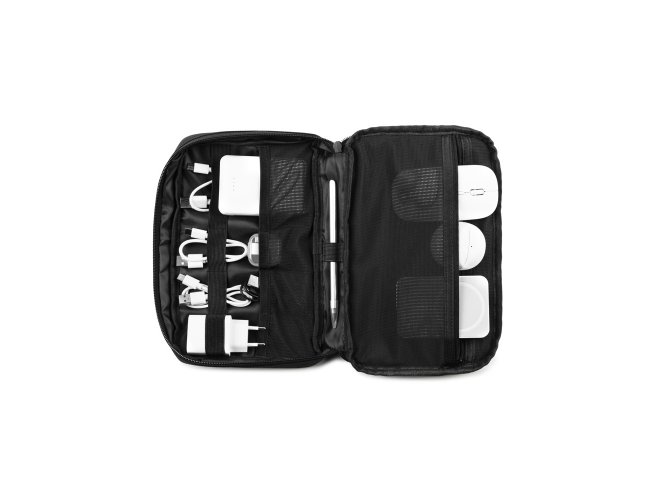 Bolsa organizadora espaçosa para acessórios tecnológicos. Composta por poliéster reciclado (rPET) 600D twill, com detalhes em PU e interior em poliéster reciclado (rPET) 210D. O compartimento principal contém vários bolsos para organizar todos os seus acessórios, cabos, carregadores e pequenos dispositivos em um só lugar.