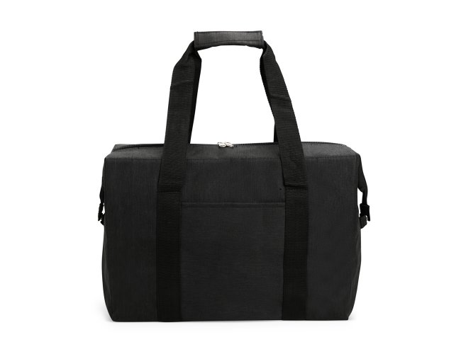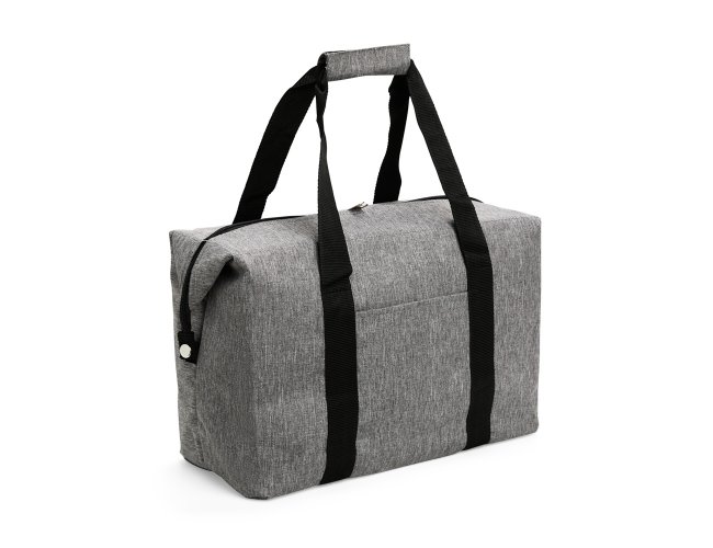 Bolsa térmica confeccionada em Oxford resistente à água, fechamento em zíper e capacidade de até 20 litros. Possui revestimento térmico interno em folha de alumínio, botões laterais de metal para junção, bolso externo e alças de mão em nylon com suporte de união por velcro.