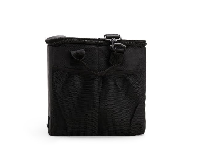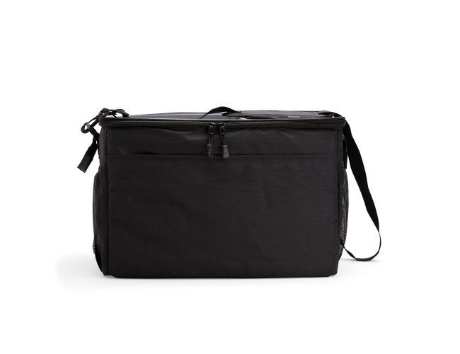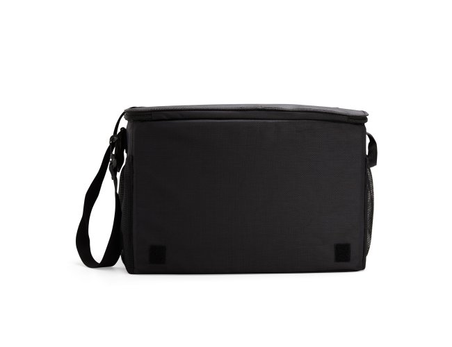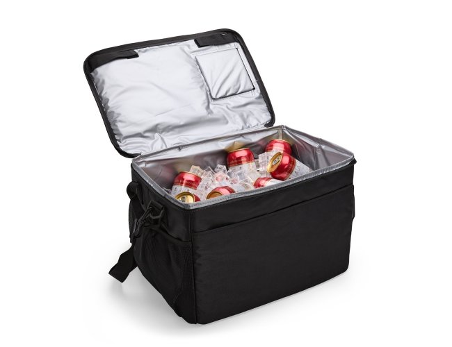Bolsa térmica confeccionada em poliéster 840D resistente à água e capacidade de até 33 litros. Possui revestimento térmico interno em PEVA atóxico, estrutura dobrável reforçada e tampa rígida em plástico PP com espaço para copos e abertura com fechamento em velcro. Conta ainda com três bolsos externos: um frontal com fechamento em velcro e dois laterais em tela de nylon com elástico. Acompanha alça transversal ajustável com apoio para ombro.