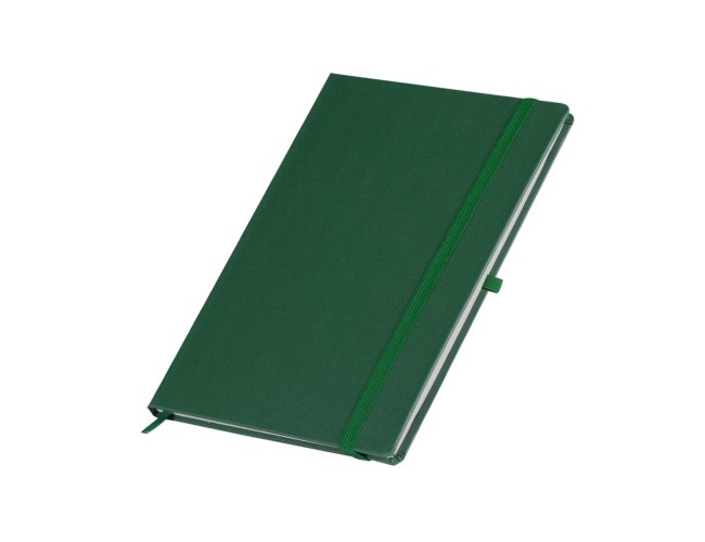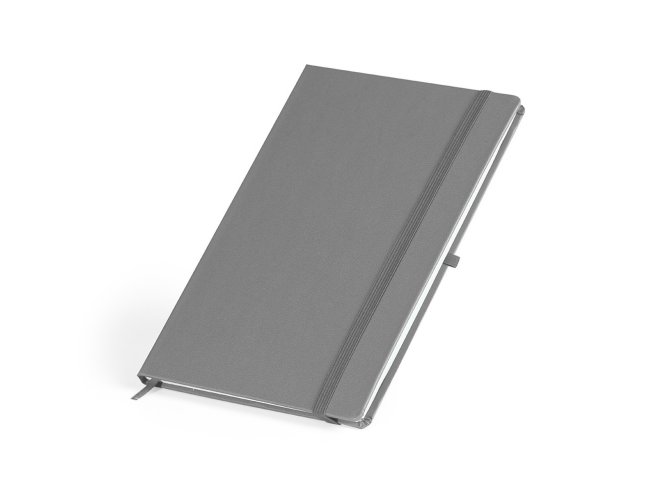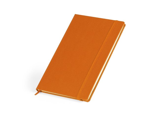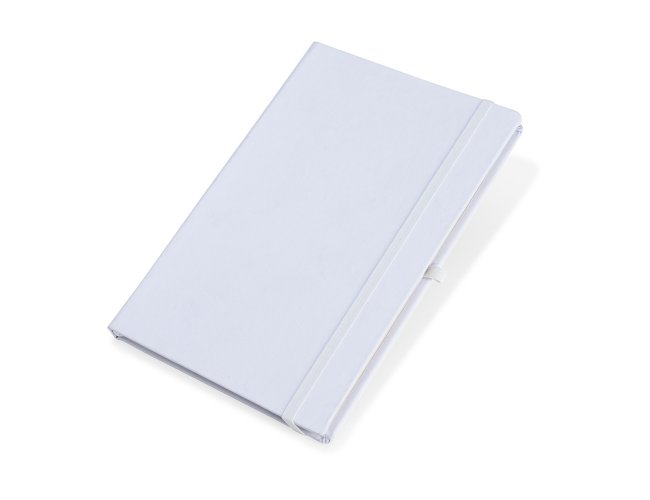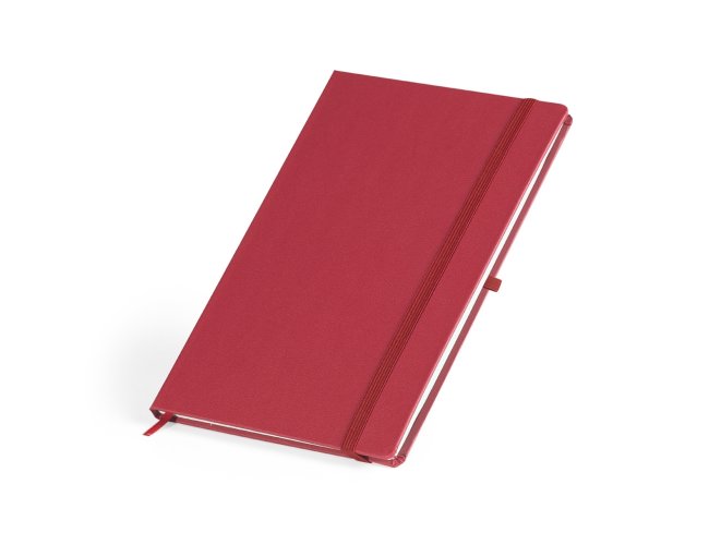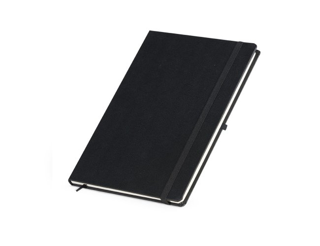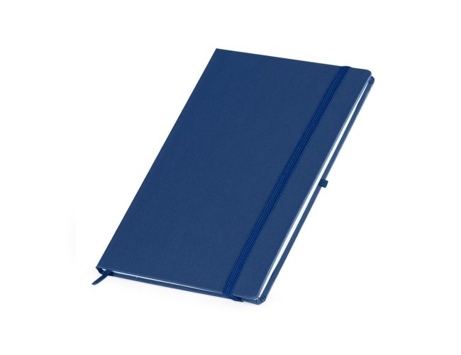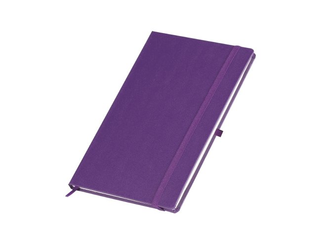 Descrição: Caderneta em percalux com porta caneta, marcador de página em cetim e fita elástica para fechar. Contém aproximadamente 80 folhas sem pauta.