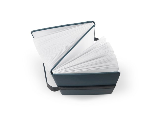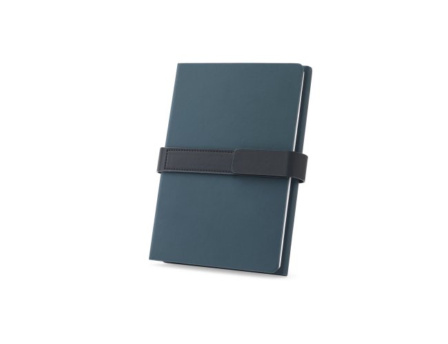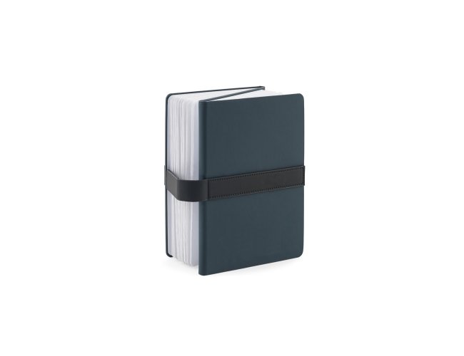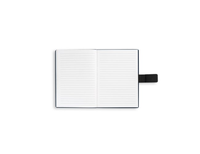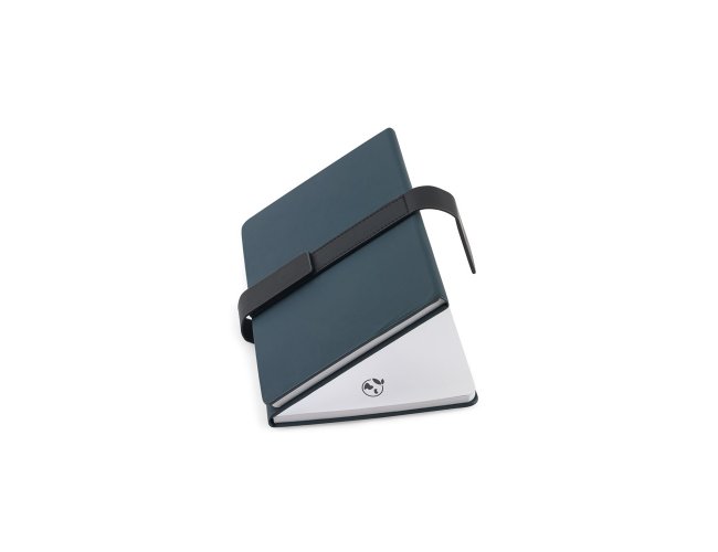 Caderno A5 com um design moderno desenvolvido para ser versátil no seu dia de trabalho. Composto por uma capa dura em 80% materiais reciclados (PU reciclado e poliéster reciclado), este caderno está estruturado em duas partes: a primeira tem 128 páginas pautadas e a segunda 128 páginas lisas, ambas feitas de um material proveniente de gestão florestal sustentável. Contém uma fita para fecho magnético do caderno.