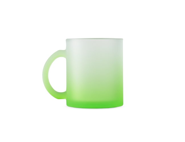 Caneca em vidro com acabamento fosco degradê e capacidade para até 350ml.
