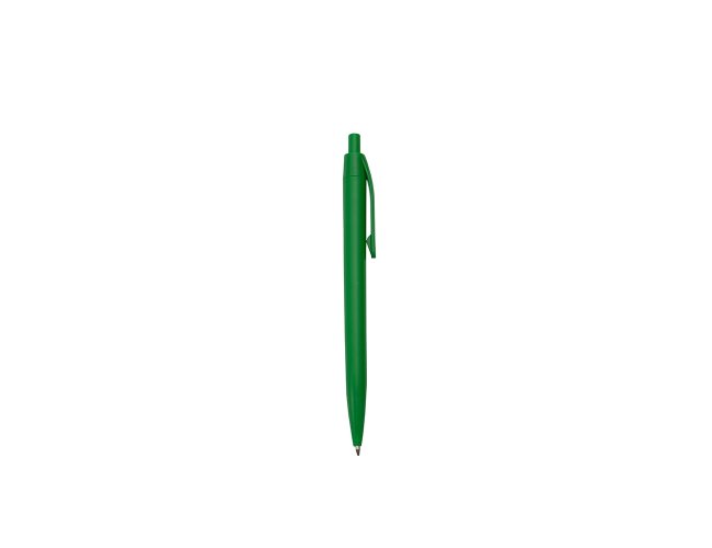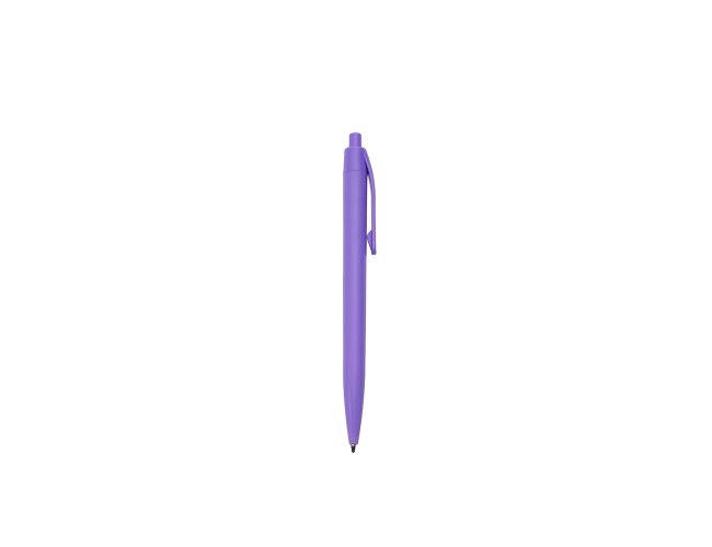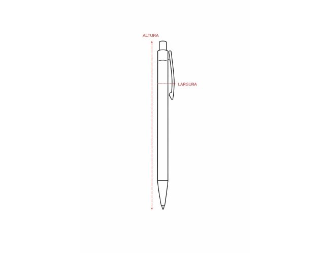 Caneta feita inteiramente em plástico. Conta com acionamento em por clique e carga esferográfica azul de 1.0mm.
