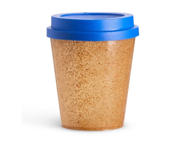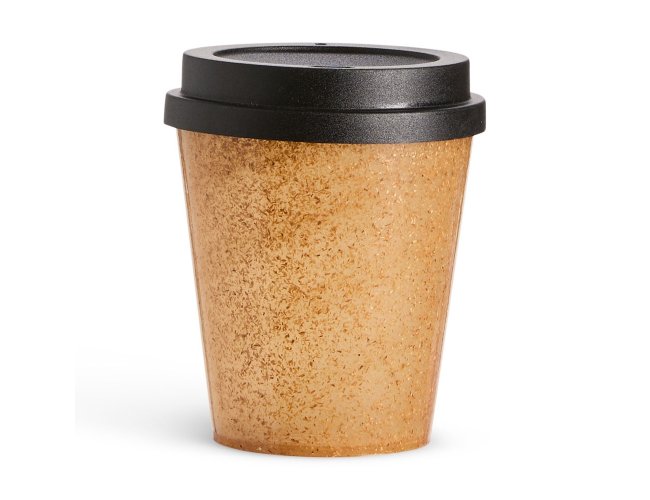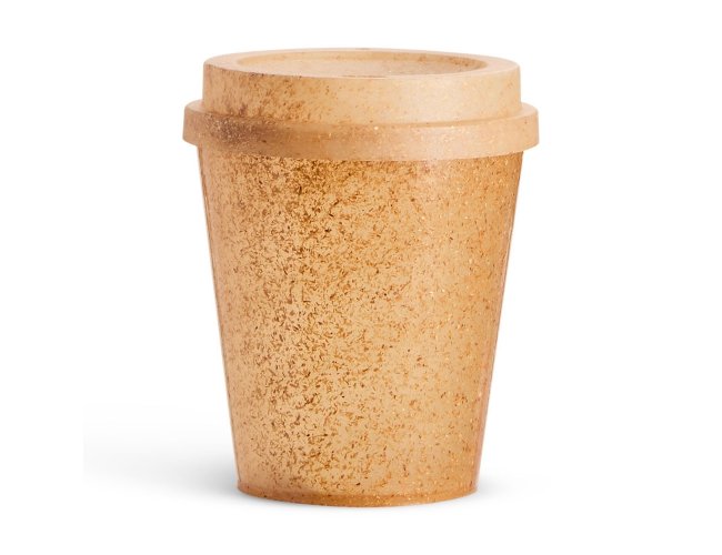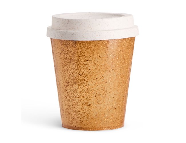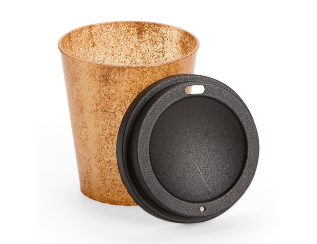 Copo feito em fibra de coco com capacidade de até 350ml. Possui tampa plástica com bocal.