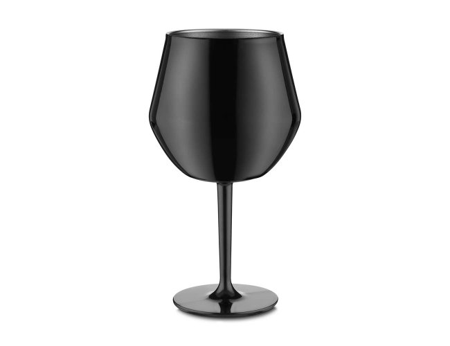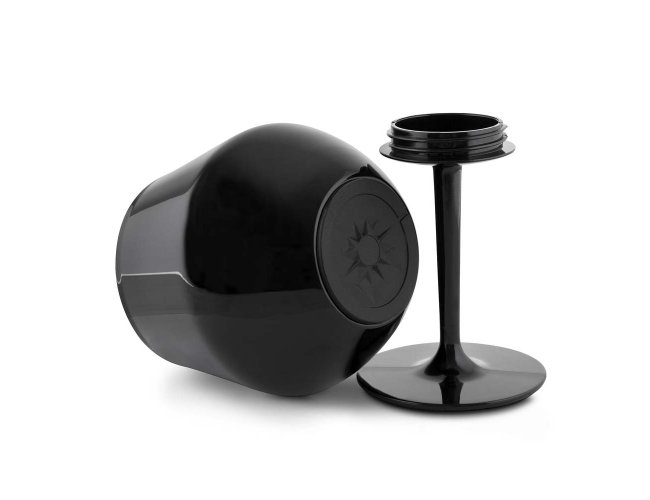 Copo/taça térmico de 350 ml brilhosa, em inox (interno 304 / externo 201), haste removível em plástico PP, discos de borracha para estabilidade.