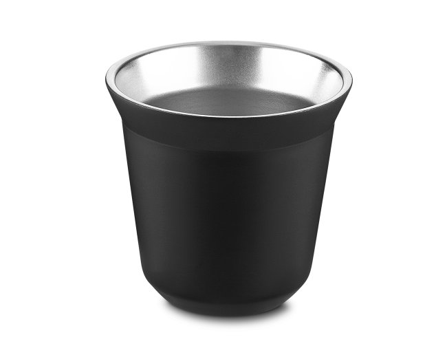 Copo térmico de 40ml, com interior em inox 304 e exterior em inox 201.