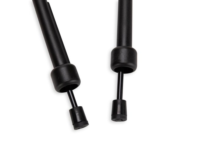 Corda de pular em PVC. Possui cabos em policloreto (PP) com estrutura que permite o ajuste do comprimento, podendo atingir extensão máxima de aproximadamente 2,5 metros.