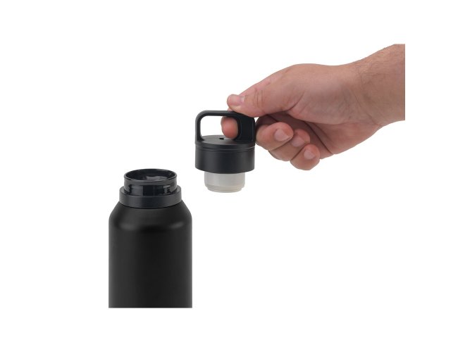 Garrafa em aço inox 91% reciclado com parede dupla isolada a vácuo e parede interna revestida a cobre, características que permitem conservar a temperatura das suas bebidas por um longo período. A tampa em PP é à prova de vazamentos e incorpora um botão que facilita a sua abertura. O acabamento da garrafa em mate confere-lhe um visual mais contemporâneo. Capacidade até 590 mL. Fornecido em caixa presente de papel kraft reciclado. Certificação EU Food Grade.