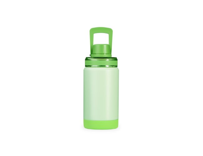 Garrafa Térmica em inox 304, pintura eletrostática e capacidade para até 400ml. Possui estrutura em parede dupla e vedação a vácuo para oferecer a conservação da temperatura de líquidos por mais tempo. Dispõe ainda de tampa rosqueável em plástico, com protetor rosqueável para o bocal e alça para transporte. Acompanha base antiderrapante removível.