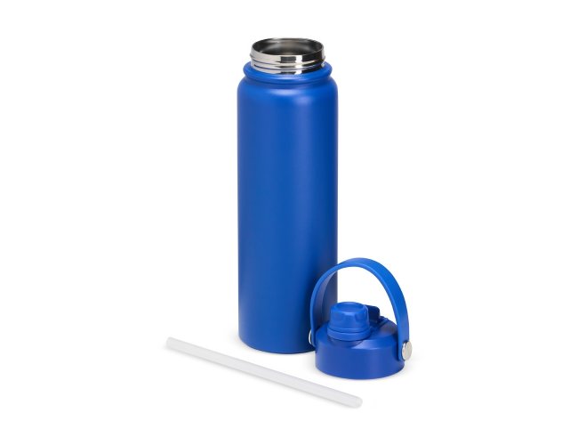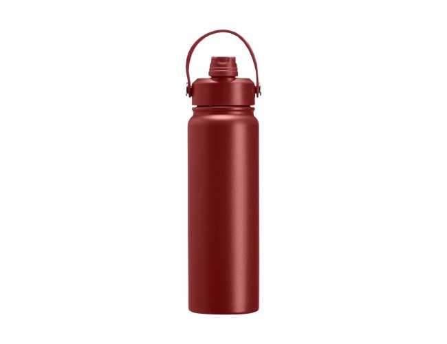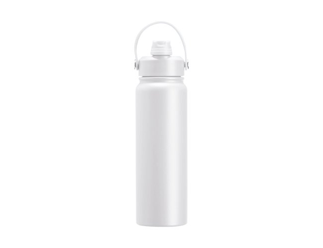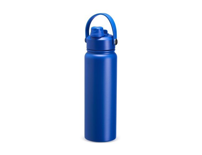 Garrafa térmica em inox com pintura eletrostática e capacidade máxima de 800ml. Possui estrutura interna de parede dupla em inox 304 e vedação a vácuo que permite a manutenção de temperatura de líquidos por mais tempo. Possui tampa rosqueável feita em plástico com proteção para o bocal, bico flip, canudo interno removível e alça fixa maleável para transporte.