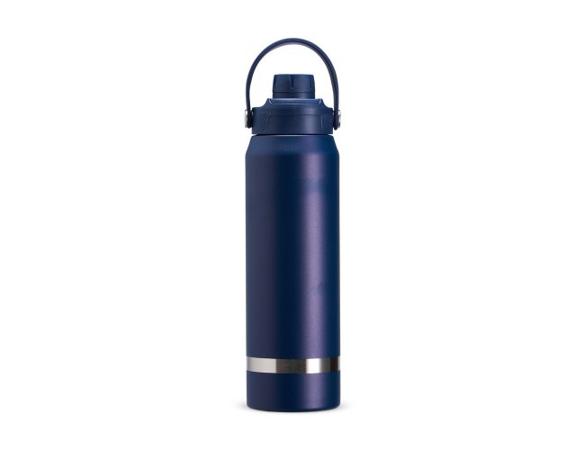 Garrafa térmica em inox 304 com capacidade para até 800ml. Possui estrutura de parede dupla e vedação a vácuo, permitindo a conservação da temperatura de líquidos por mais tempo. Conta ainda com tampa plástica rosqueável com protetor para o bocal, além de alça para transporte.
