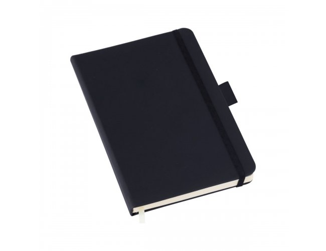 Caderneta tipo MOLESKINE Preto com Suporte para Caneta - 80 Folhas - com Pauta. Tam: 14x21- LG3782.