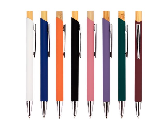 Caneta esferográfica com carga azul de 1.0mm. Possui construção metálica e acionamento por clique em bambu, o que proporciona uma pegada leve e maior precisão durante o uso. - XB08170.