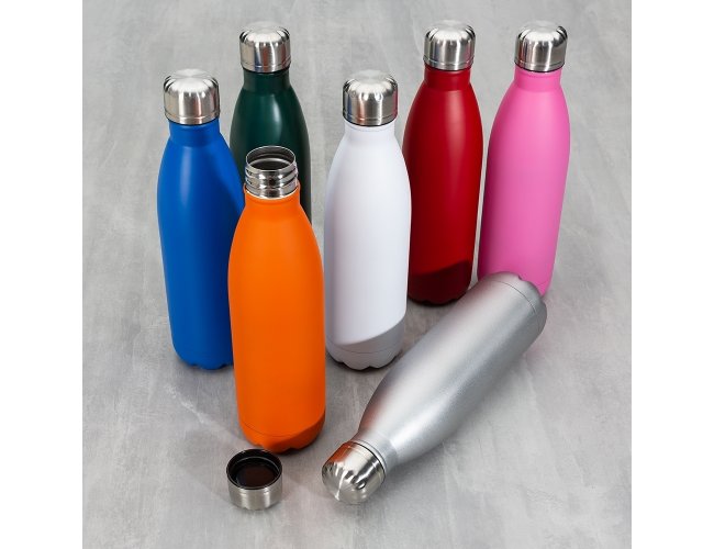 Garrafa 750ml em inox com tampa rosqueável e pintura fosca. Obs.: Não é um modelo térmico. XB17011F.