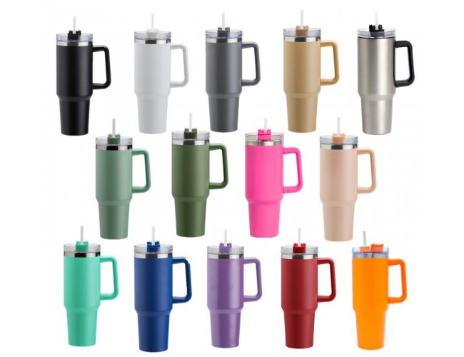 Caneca térmica com capacidade de 1,2 litros feita em inox 304 com parede dupla, contém tampa acrílica rosqueável com acesso para canudo e pegador plástico. Acompanha canudo plástico. - XB06033.