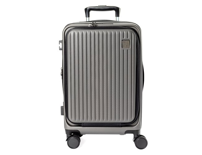 Mala de viagem feita em ABS com capacidade de até 33 litros quando o zíper externo de expansão é aberto. Possui abertura frontal com bolsos de zíperes, uma divisória para notebooks de até 15,6 polegadas e cinta compressora para roupas. Conta ainda com cadeado TSA embutido na parte superior, quatro rodinhas giratórias 360°, duas alças de mão, além de apoios e ganchos laterais. Acompanha placa metálica personalizável.