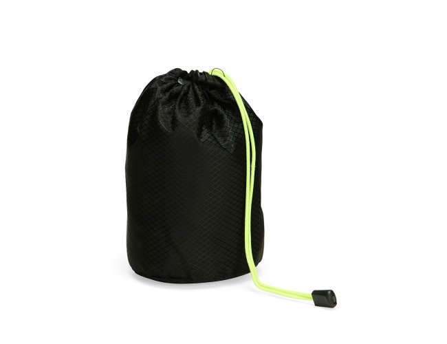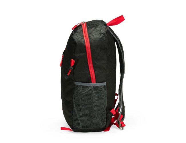 Mochila dobrável confeccionada em poliéster impermeável e detalhes em plástico, com fechamento em zíper e capacidade máxima de 16 litros. Possui compartimento interno com divisória para notebooks de até 15,6 polegadas. Conta com bolso frontal com zíper, dois bolsos laterais em tela com elástico, alça superior em nylon e duas alças traseiras com tecido telado interno. Acompanha saco em nylon com regulagem, que facilita o transporte quando dobrada.