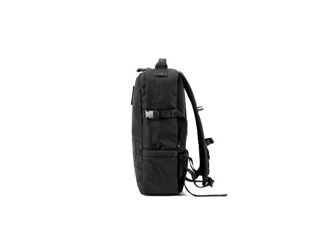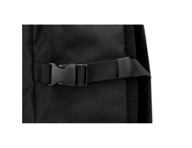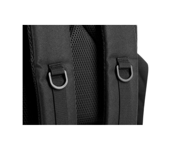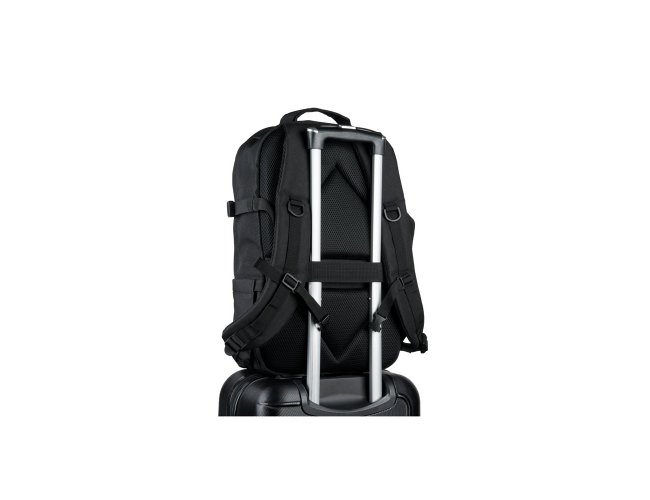 Mochila para utilização diária em ambientes profissionais ou de lazer, ideal também para esportes e caminhadas ao ar livre. O seu design torna esta mochila um produto versátil e resistente. Composta por poliéster reciclado 600D de alta densidade e forro em poliéster reciclado 210D. Possui um compartimento principal com bolso para notebook até 17.3" e diversos bolsos que facilitam a organização dos itens, um bolso com zíper e um bolso lateral. Possui características particulares como cintas de compressão nas laterais, tiras multifuncionais em webbing, alça peitoral ajustável, pega na parte superior e alça para trolley em caso de necessidade. Contém também um emblema removível, com o mesmo material da mochila, ideal para personalização. Capacidade até 21 L.
