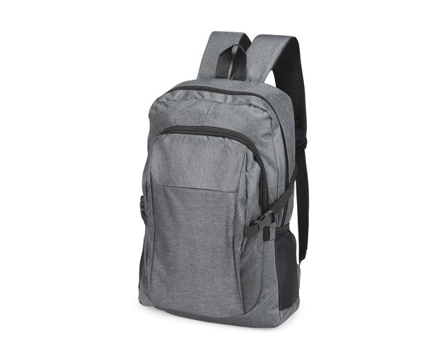 Mochila confeccionada em Oxford 300D resistente à água com capacidade máxima de 14 litros. Possui compartimento principal com divisória para organização de objetos internos e outro, localizado na parte frontal, com três bolsos internos em diferentes tamanhos. Conta ainda com bolsos laterais em tela de malha com elástico, um par de fivelas de engate lateral em plástico, alça superior em nylon e alças para as costas com revestimento externo em tecido respirável.
