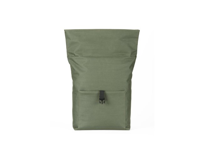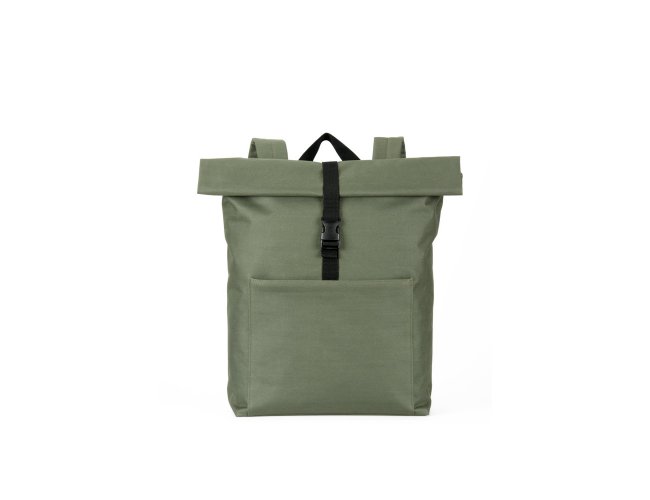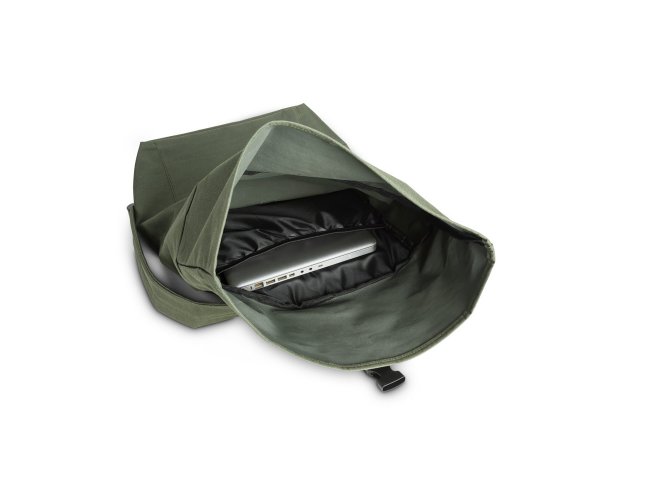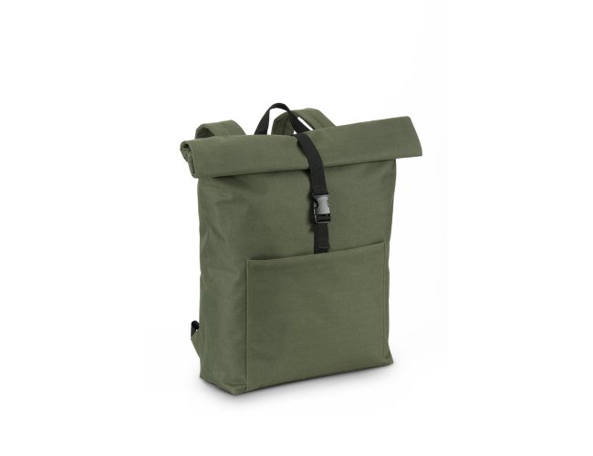 Mochila "Roll-top" para notebook em 600D e forro em 210D. Possui um compartimento principal espaçoso para notebook até 17.3", com fecho de enrolar no topo. Bolso frontal com zíper. Capacidade até 21 L.