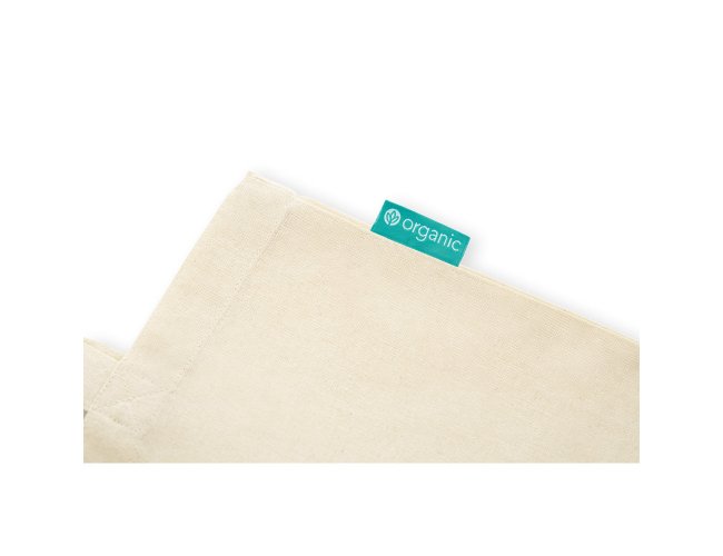 Sacola 100% algodão orgânico (120 g/m²) com alças de 60 cm. Proveniente de um cultivo sustentável, sem químicos ou pesticidas e Label Organic.