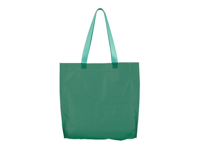 Sacola confeccionada em PVC All Clean 030 soldado com alças lisas em cetim.