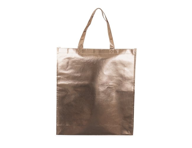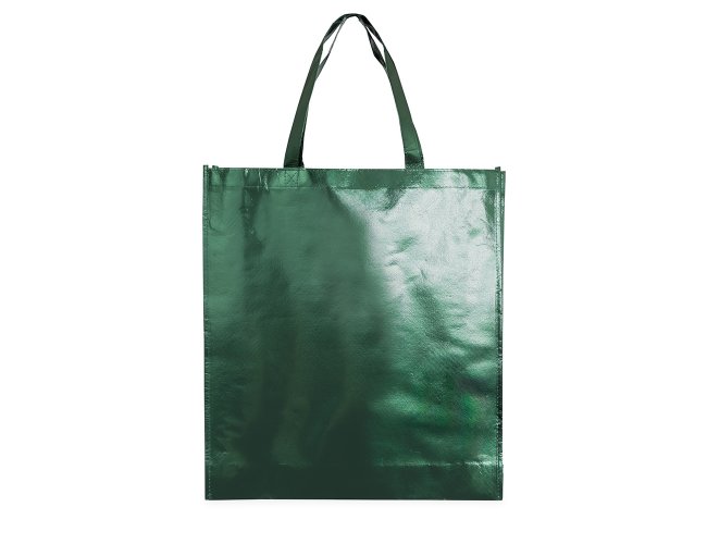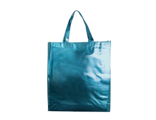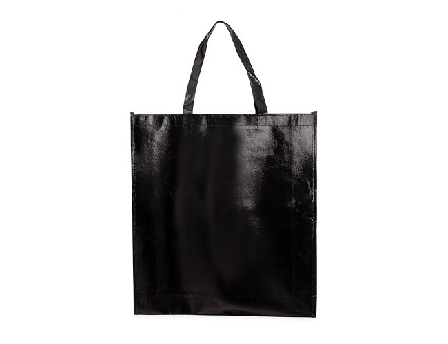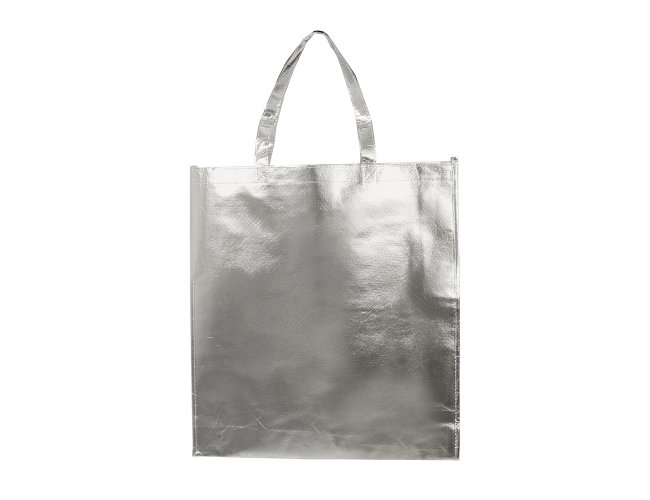 Sacola confeccionada em TNT com revestimento externo laminado e duas alças costuradas.
