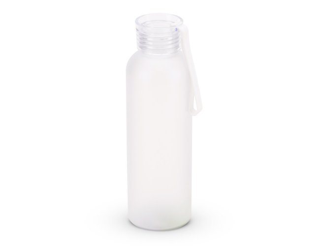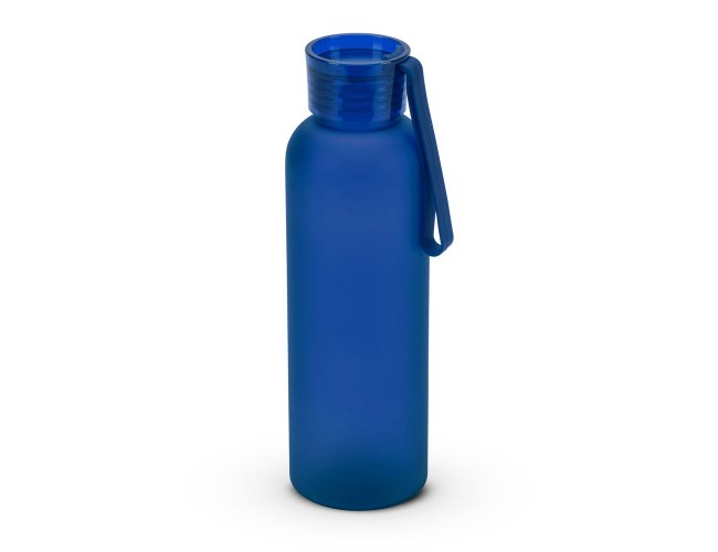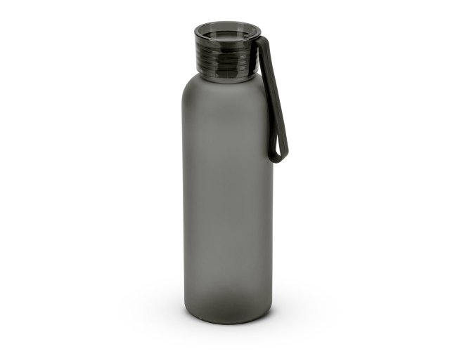 Squeeze esportiva em PET 100% reciclado, com acabamento fosco. A tampa em PS, à prova de vazamentos, possui fita em silicone que facilita o transporte. Capacidade até 600 mL. Certificação EU Food Grade.