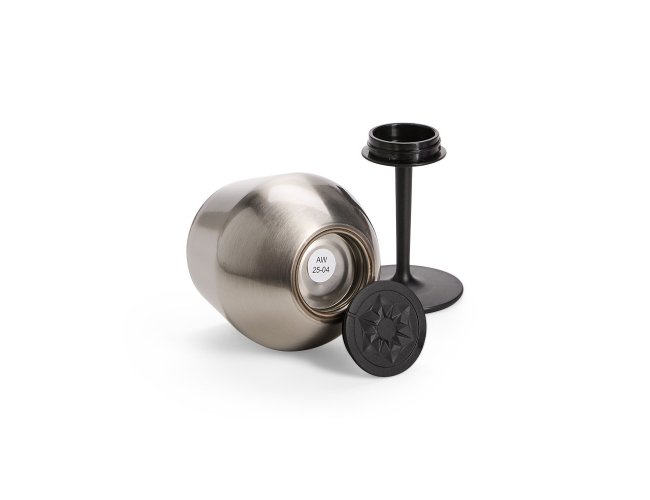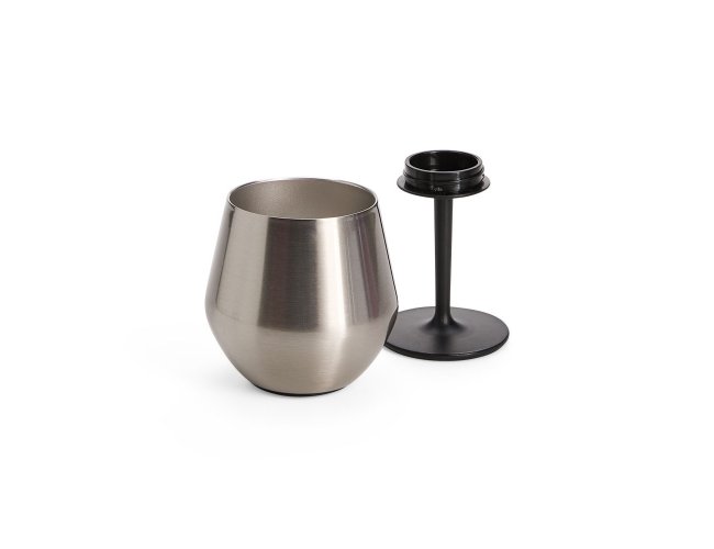 Taça térmica com capacidade de até 350ml. Contém estrutura em inox de parede dupla e haste em plástico com base emborrachado antiderrapante. Pode ser desmontada e utilizada como copo. Contém base antiderrapante para encaixar no copo quando desmontada.