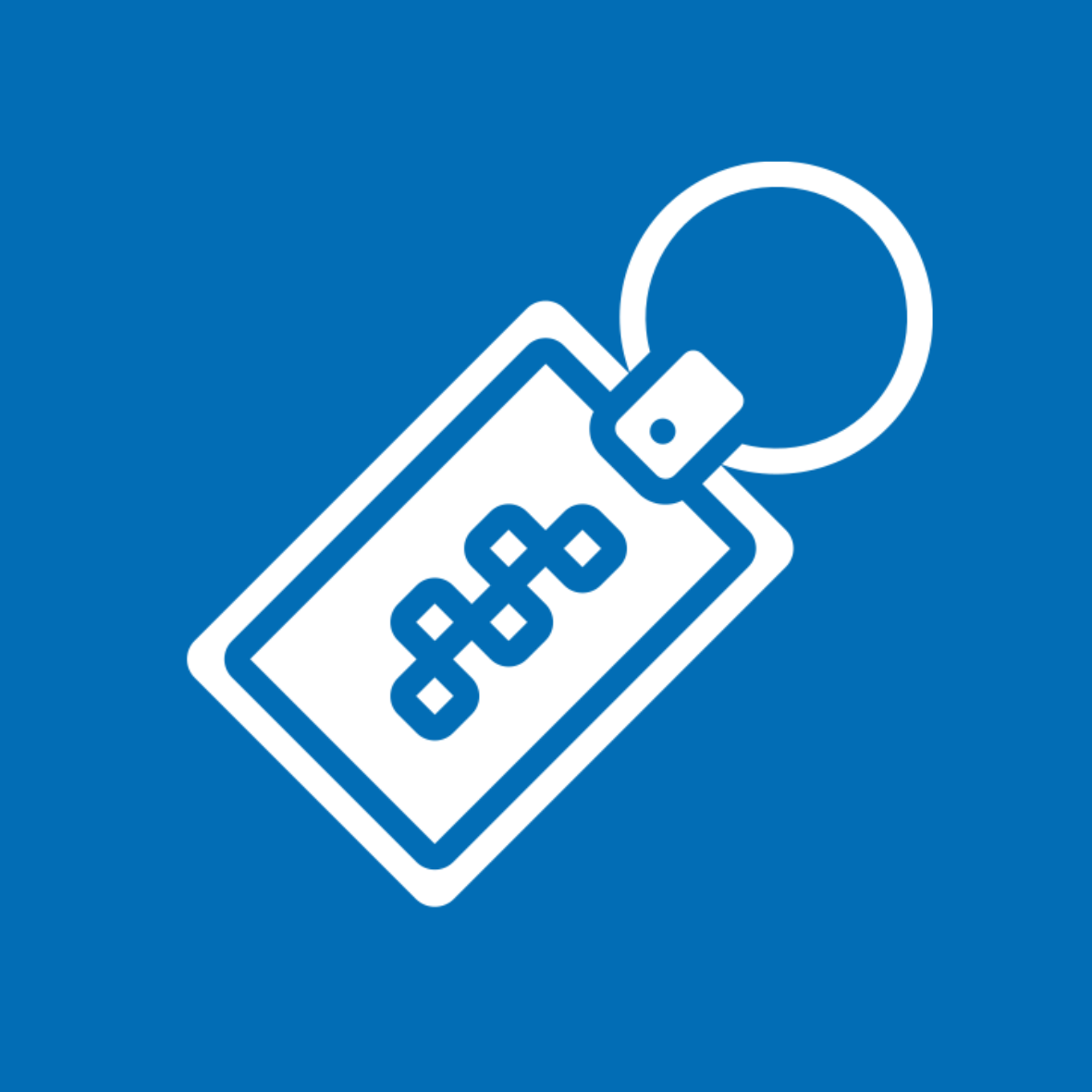 Chaveiro de acrílico em formato quadrado, frente, verso liso. Possui prendedor de plástico que conecta a argola metálica. Tam. 6,1x6,1cm.